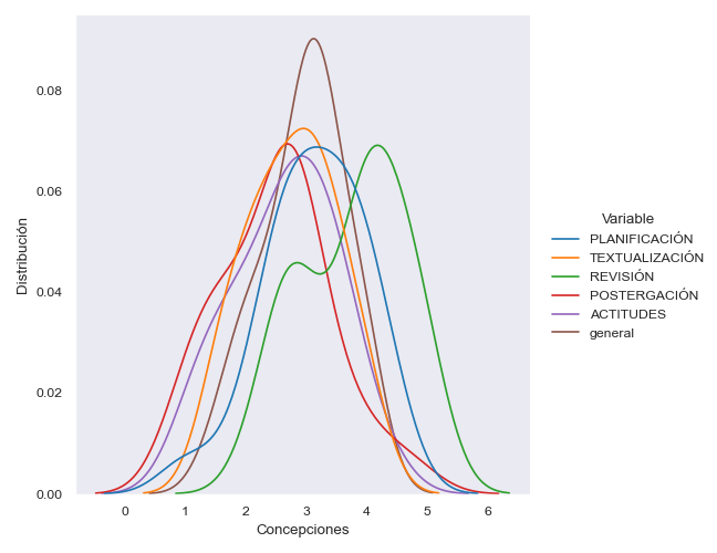 Al abordar las concepciones en torno a la escritura, distintas son las perspectivas que podemos adoptar. Por ejemplo, algunas investigaciones indagan en cómo conciben los estudiantes la escritura, vale decir, si valoran su dimensión epistémica o se quedan simplemente con su función reproductiva (GONZÁLEZ; GONZÁLEZ y GONZÁLEZ-OCAMPO, 2020). Por su parte autores como (LONKA et al., 2014) se interesan en un mayor número de aspectos, muchos de ellos relacionados con el proceso de escritura: bloqueos, procrastinación, perfeccionismo, habilidad innata, transformación del conocimiento y productividad. Ahora bien, para los fines de nuestra investigación, hemos adoptado la propuesta de Vine-Jara (2020), pues se enfoca, específicamente, en el proceso de escritura. La autora, sobre la base de los trabajos de Difabio de Anglat (2012) o Rodríguez Hernández y García Valero (2015), aborda las tres instancias del proceso de escritura (antes, durante y después) a través de cinco dimensiones: planificación, textualización, revisión, postergación del inicio de la escritura y actitudes hacia la escritura.