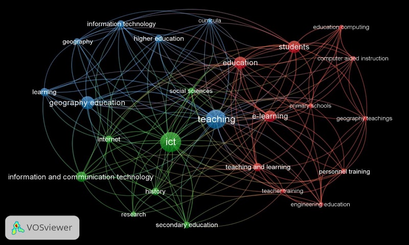 En cuanto a las principales líneas de investigación, los análisis de co-citación y co-ocurrencia refrendan la preferencia por la disciplina de la geografía, dentro de las ciencias sociales, como materia para el desarrollo de procesos educativos mediados por tecnologías, influyendo en estos resultados los boleanos seleccionados. Cabe reseñar los trabajos que reflejan el cambio en el paradigma del proceso formativo de la materia de geografía al incorporar las TIC ( Hillis y Munro, 2005; Piotrowska et al., 2019; Svobodova et al., 2016); las posibilidades que el e-learning han brindado para desarrollar los programas educativos sobre ciencias sociales ( Bosco y Rodríguez-Gómez, 2011; Lynch et al., 2008; Mendler; Simon y Broome, 2002); o su aplicación en diferentes etapas educativas, como primaria ( Deaney; Chapman y Hennessy, 2009; Grigoriou, 2016; Villena Taranilla et al., 2019), secundaria ( Arancibia y Badia, 2013; Arancibia Herrera y Badia Garganté, 2015; Biddulph; Lambert y Balderstone, 2012; Sánchez y Morales, 2015) o universitaria ( Miralles et al., 2019; Ortega-Sánchez y Gómez-Trigueros, 2019).