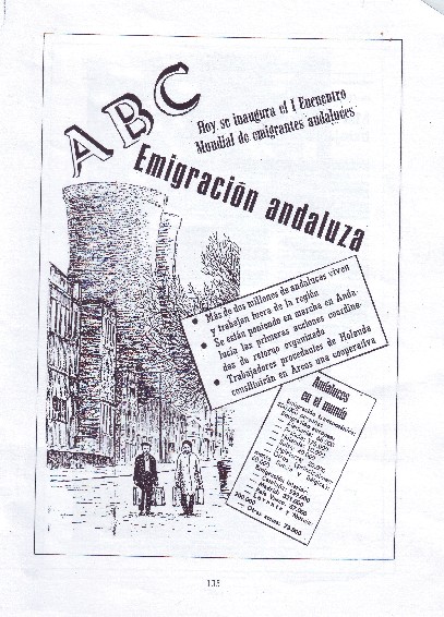 [...] hay que buscar una nueva fórmula de la política emigratoria que abandone definitivamente la falsa disyuntiva entre asimilación o retorno [...] el objetivo más importante a conseguir en una política cultural para la emigración necesita, de una parte, el contacto permanente de nuestros emigrantes con la cultura histórica y de vanguardia que emerge continuamente en Andalucía y de otra, que se produzca la incorporación y participación progresiva de los mismos en los fenómenos culturales de los países de acogida. Sólo de esta manera podrá conseguirse la definición de una cultura propia de los emigrantes andaluces, cultura de síntesis, enriquecedora, y que no haría más que proyectar en otras formas culturales la vocación universalista de la cultura propia de Andalucía [...] para facilitar la emergencia de la cultura de síntesis y promocionar una concepción pluriforme en todos sus campos, prestaremos nuestro máximo apoyo a la celebración de actividades mixtas que reúnan los aspectos relativos a la cultura de Andalucía y los referidos a la cultura autóctona (Consejería de Trabajo y Seguridad Social, 1985, p. 61-62)[24].