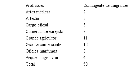 Table 1. Professions of immigrants of Portuguese origin in the municipality of Paranaguá (1801).