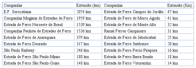 Chart 2. Railways of São Paulo and their extension in 1940.
