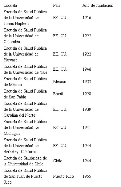 En 1922, se fundó la Escuela de Salubridad de México, la primera en América Latina, que impulsó una especialidad en medicina preventiva a tono con las impulsadas por Abraham Flexner y William Welch desde 1918 en Estados Unidos. La Escuela mexicana dependió directamente del Departamento de Salubridad Pública y formó a médicos salubristas, enfermeras visitadoras y agentes sanitarios (Gudiño Cejudo, 2016). En 1938 en Brasil, la Dirección Nacional de Salud implantó una política de capacitación de cuadros técnicos para los servicios nacionales y estatales. En 1948 existían en los Estados Unidos nueve facultades de salud pública que no estaban subordinadas a las facultades de Medicina, sino que eran escuelas independientes dentro de las universidades (Cueto, 2004). En Chile se creó en 1945 la Escuela de Salubridad en Santiago vinculada con la Universidad de Chile, el Servicio Nacional de Salubridad y el Instituto Bacteriológico. La misma fue alentada por Hackett, quien canalizó becas de investigación para formar personal capacitado tanto en salubridad como en enfermería (Hackett, 1945b).