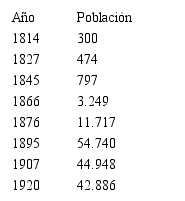 El caso que aquí nos ocupa, Iquique, el segundo puerto en importancia del país después de Valparaíso hacia fines del siglo XIX y ubicado en el extremo norte del país[6], experimentó un contexto parecido al de otras ciudades en su proceso modernizador, pero vio intensificados los inconvenientes sociales a debida cuenta que estaba ubicado en la costa del desierto más árido del planeta, el de Atacama. Iquique emergió a fines del siglo XVIII como un lugar funcional para embarcar la plata del yacimiento de Huantajaya y el guano de las covaderas aledañas, teniendo por largo tiempo una lánguida existencia. Recién hacia las décadas de 1830-1860, a raíz de la activación de la minería del salitre, comenzó a adquirir una fisonomía urbana, proceso que se incrementó vertiginosamente en las décadas de 1870-1910 como resultado de la gran expansión de esta actividad extractiva[7]. De este modo, comenzaron a llegar a sus muelles los trenes que transportaban el llamado oro blanco, riqueza no sólo extraída por un contingente de trabajadores cada vez más numeroso, sino además generadora de una dinámica comercial nunca antes vista en estos desérticos parajes, al punto de conllevar un acelerado crecimiento demográfico que, inevitablemente, demandó cada vez con mayor intensidad el tener a disponibilidad un recurso escaso y vital como el agua, el que además fue disputado por las faenas mineras y los trenes[8]. Bajo estas condiciones, el aumento poblacional fue exponencial, tal y como se puede ver en la siguiente tabla: