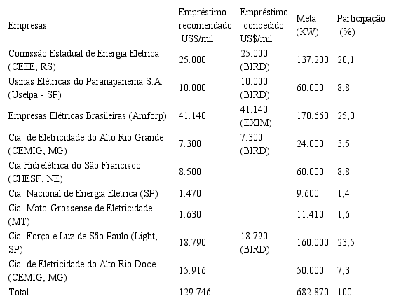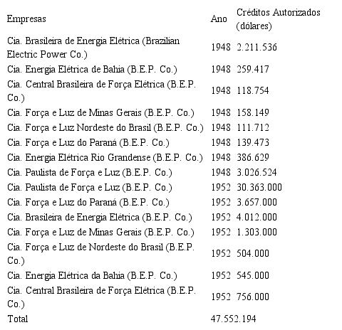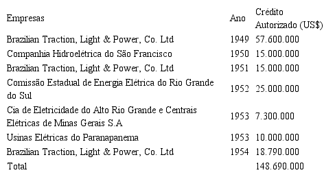 Afinal, apesar da preocupação do governo federal com o fomento das empresas elétricas estatais e mesmo da CHESF sob responsabilidade do governo federal, no Brasil as duas principais empresas receptoras dos empréstimos do BIRD e Eximbank seriam justamente a canadense Light e a norte-americana Amforp entre 1949 e 1954: enquanto a Light recebeu mais de 91 milhões de dólares do BIRD, as subsidiárias brasileiras do grupo Amforp ficariam com toda a quantidade desembolsada pelo Eximbank, de 47 milhões de dólares. É preciso qualificar essa ênfase dada ao setor privado internacional, afinal juntas as duas empresas representavam cerca de 70% da geração de energia elétrica no país, o que por si justifica uma priorização na divisão dos recursos.