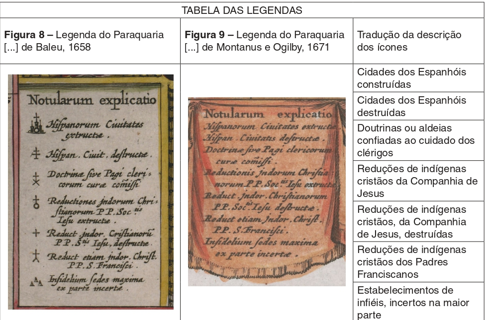 Os elementos que constituem a base cartográfica, decorrente da observação direta dos missionários e a simbologia[22] – que traduz a trama da fundação, transladação e destruição de reduções jesuítico-guaranis e de povoados hispânicos – definem o Paraquaria [...] como um artefato nitidamente jesuítico.
