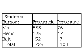 La cuantificación de la prevalencia del síndrome de agotamiento profesional se realiza mediante la evaluación tridimensional. La prevalencia del síndrome de burnout en alto grado ascendió al 76% de docentes, en grado medio en un 17%, y en grado bajo en un 7%, como se recoge en la tabla 4. A tenor de los resultados obtenidos y el modelo empírico seguido, cabe resaltar que el 76% de los docentes que conformaron la muestra obtuvieron puntuaciones altas en las dimensiones agotamiento emocional y despersonalización, y puntuaciones bajas en la dimensión realización personal. El 17% de los docentes con prevalencia en grado medio en cuanto a agotamiento personal, despersonalización, y realización personal. El 7% de los docentes obtuvieron puntuaciones correspondientes al grado bajo en cuanto a las dimensiones de agotamiento emocional y despersonalización, y puntuaciones de grado alto en la dimensión realización personal.