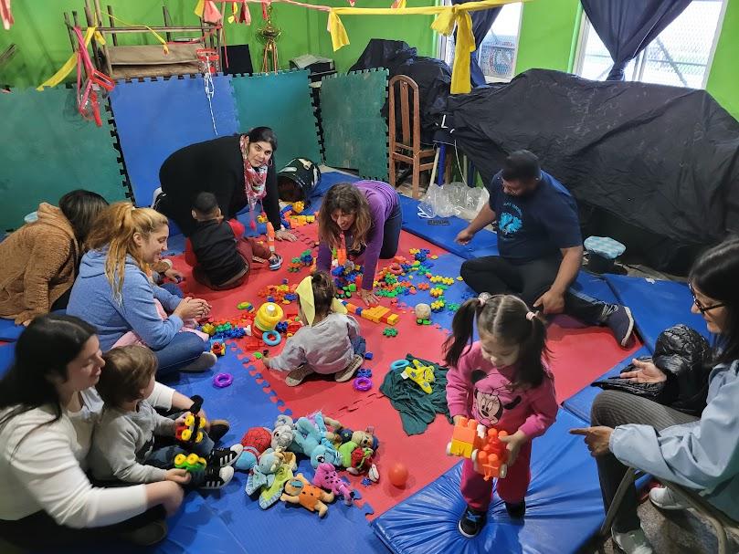 Sin embargo, también se podría enumerar las maneras que tienen de cuidar desde los abrazos y besos que contienen, la alegría en el rostro cuando ven a sus niños o niñas jugar, la paciencia y el gesto indicativo para explicarles el uso de un objeto, la mano que acompaña para decir que no; y la disponibilidad corporal para participar activamente de un taller de juego. Esto también pasa en los barrios populares.