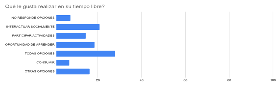 El primer aporte, en relación a la agrupación que se corresponde con aspectos vinculados al tiempo libre para este segmento de público. Así, se pudo identificar que se tratan de personas que al elegir este tipo de actividades busca propuestas que les posibilitan romper con el esquema de la semana, pudiendo ocuparse en otros horarios y asistir a otros espacios que estén por fuera de su rutina semanal. Las actividades escogidas varían entre aquellas que quedan pendientes del ámbito doméstico, otras que les propicien establecer instancias sociales, o que les permitan distintos grados de aprendizaje. En referencia a las dos últimas actividades mencionadas podemos sumar que, quienes buscan interactuar socialmente (45 encuestados) optando por propuestas que les permiten estimular sus vínculos afectivos/sociales con familia y/o amigos; y los que buscan aprender (40 encuestados)[6] señalaron la posibilidad de asistir a instancias que les brinden una educación no reglada, informal, que auné aspectos del aprender con el disfrute o la diversión. Esta información nos acerca a la idea de que no se trata de un grupo homogéneo de personas, ya que, a partir de lo mencionado, por lo menos detectamos dos agrupaciones ―asisten en pos de socializar; asisten en pos de un aprendizaje― para este segmento de público con necesidades e intereses distintos.