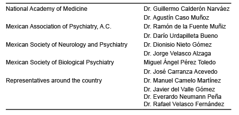 On March 24, 1972, during an ordinary meeting of the Board of the Mexican Association of Psychiatry (MAP), Dr. Darío Urdapilleta Bueno, the incumbent president, informed the board that a council of specialists would be summoned according to the existing guidelines Table 1 .