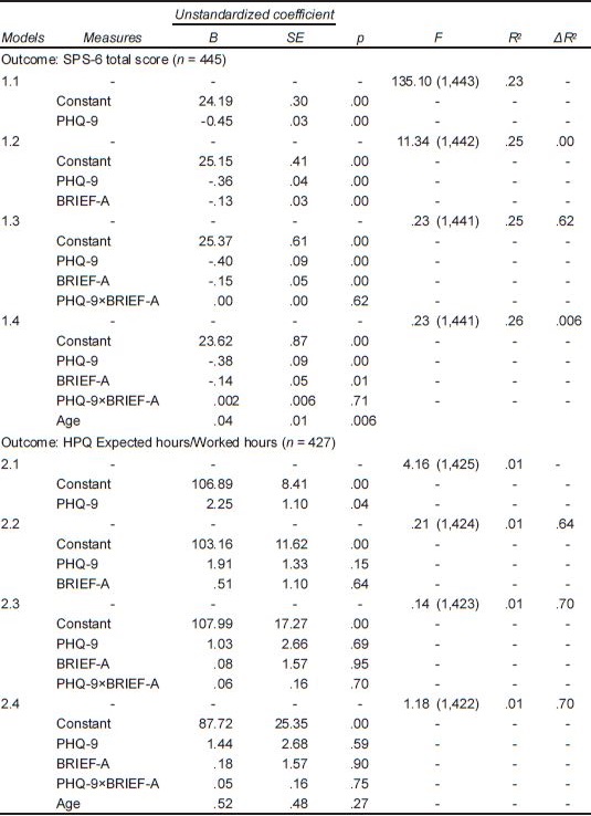 Objective: Was to analyze the moderating effect of executive functioning (EF) on the relation between depression severity and work performance (presenteeism and absenteeism).