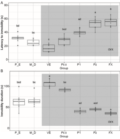 Discusión y conclusión: El tratamiento subagudo con progesterona reduce la conducta tipo depresión inducida en un modelo de menopausia quirúrgica con participación del receptor GABAA.