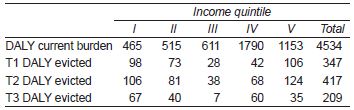 Ensuring a coverage of 80% of the population has an impact of 98 and 106 DALYs are avoided in the poorest quintile for T1 and T2, respectively, and even in the richest quintiles it has a positive effect (Table 3).