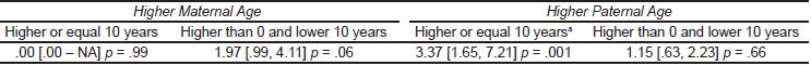 Results: Advanced paternal age in Mexican children increases the risk for ASD, and also, a difference of 10 years between parental ages have a higher risk.