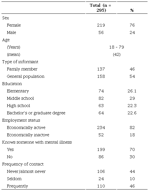 Focal groups were conducted as part of a broad strategy to investigate the nature of discriminatory opinions, attitudes, and practices regarding mental illness. Interviews lasted an average of 90 minutes, and the application of the instrument an additional 20 minutes; PDDs were completed prior to the interviews in order to avoid influencing participants’ opinions. At the end of their participation, respondents were thanked for their collaboration and given an opportunity to ask questions to clarify any concerns. A more extensive description of the organization of the groups and the qualitative findings can be found in a previous publication (Mora-Ríos, Natera-Rey, Bautista-Aguilar, & Ortega-Ortega, 2013b).