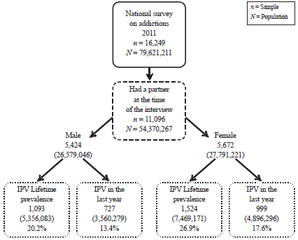 Although surveys in Mexico and previous studies (INEGI, 2017; INEGI & INMUJERES, 2013) have revealed epidemiological data on violence against women, there is still no national study that includes men, nor the population of 12 to 65 years living in their homes. Therefore, the objective of this epidemiological study was to estimate the prevalence of IPV and its association with alcohol and drug consumption, in a representative sample of men and women in Mexico, through secondary data analysis.