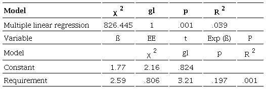 Finally, to identify predictors of DS, the following were considered as independent variables: maternal (age, marital status, schooling, number of children, demandingness, and responsiveness) and of the child (sex and BMI) and multiple linear regression analysis was applied. The model was significant (χ2 = 826.445, gl = 1, p = .001). Using the Enter procedure with manual elimination of variables (first, variables not contribuing to the model were excluded), it was identified that the variable that contributed to the model was demandingness. Specifically, it is shown that for each unit that increased the demandingness, the probability of presenting DS also increased (Table 5).