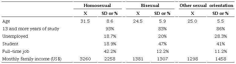 Considering the results of previous studies in the LGBT population, it is expected as a hypothesis to find differences within the different groups that make up this population, where the population who reported themselves as bisexual would have worse mental health than those who define themselves as homosexuals (gays and lesbians; Chan, Operario, & Mak, 2020; College, Hickson, Reid, & Weatherburn, 2015; Ross et al., 2018).