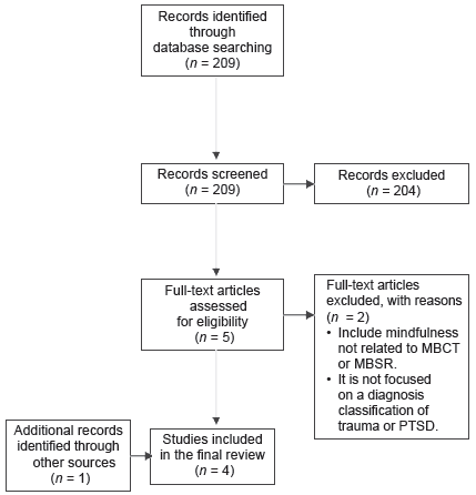 The present review of scientific journals aims to systematically review and update existing literature about the association between PTSD and MBCT or MBSR. The objectives have been listed as follows.