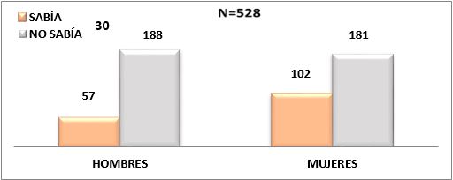 El 70% de los pacientes valorados desconocían que tenían valores de TA ≥140/90 mm Hg. Los 528 pacientes que resultaron con valores de TA ≥140/90 mm Hg, 159 (30,1%) estaban conscientes de su condición de hipertensos; sin embargo, no estaban controlados; 36% de las mujeres y 23% de los hombres estaban conscientes de su condición de hipertensión (Figura 2).