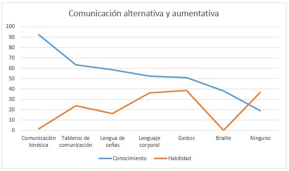 Por consiguiente, en este estudio se considera que las personas con discapacidad tienen oportunidades limitadas para la atención odontológica debido al comportamiento del paciente, la infraestructura, y la comunicación. La comunicación es fundamental para la educación en salud, la identificación de la problemática a intervenir, la explicación del tratamiento y la solicitud de colaboración necesaria por parte del paciente, y así lograr prevenir la enfermedad. Tal como lo mencionan Martínez et al. (24), para realizar estrategias de prevención, con pacientes con deficiencias auditivas, es necesaria la presencia de un intérprete o que el personal de salud conozca lengua de señas, ya que no se logra una comunicación efectiva. No obstante, en esta investigación menos de la mitad de los odontólogos sabe manejar algún tipo de lenguaje aumentativo y alternativo.