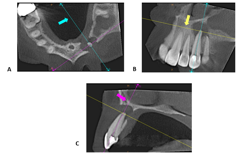 La experiencia en diagnóstico tomográfico de varios especialistas en radiología maxilofacial ha sido adecuada para reducir la variabilidad y subjetividad en la observación y medición de múltiples casos analizados y medidos por los expertos. Esta se ha desarrollado a través de la exploración en los tres planos espaciales dentales sobre el reformato multiplanar (MPR- siglas en inglés de Multiplanar reformat) oblicuo, definido como aquella reconstrucción tomográfica con angulación o inclinación de los ejes coronal, axial y sagital.