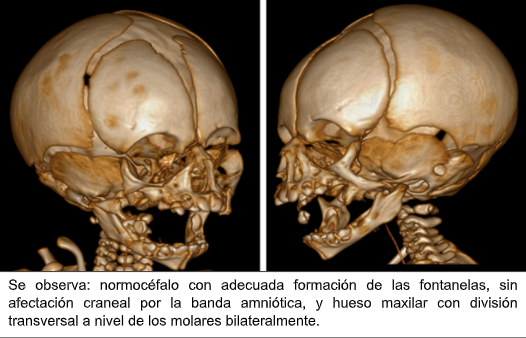 Palabras clave: síndrome de bandas amnióticas, congénito, anomalías maxilofaciales, hendidura facial, pediatría.