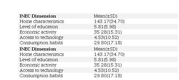 Once the inclusion criteria were verified, the legal representatives of the participants were asked to fill out the INEC (Ecuadorian Institute of Statistics and Census), the entity in charge of the statistical management of Ecuador, socio-economic survey, which is structured by 4 items: home characteristics, access to technology, level of education and economic activity at home.