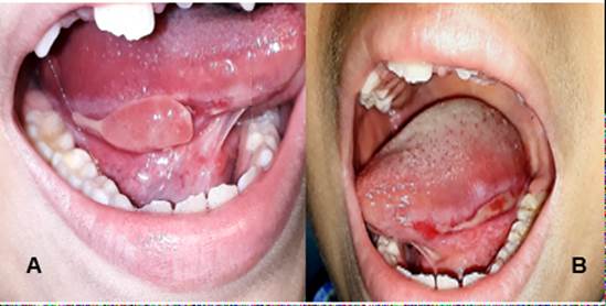 Paciente femenina de seis años, con antecedentes de salud, dentición primaria temprana y presencia de dientes neonatales. Acude a consulta acompañada por la madre, quien expone su preocupación por que la menor presenta, desde hace tres meses, úlceras en la lengua que no mejoran con el tiempo y que inicialmente fueron muy dolorosas, tornándose, posteriormente, asintomáticas, pero que, en ocasiones, generan molestias durante la masticación. Previamente, la paciente había sido valorada y tratada por su estomatólogo, mediante un tratamiento con agentes cicatrizantes (enjuagatorios con sábila y caléndula officinalis) que no provocó mejoría. Se refiere, incluso, que la lesión se fue volviendo más proliferativa y de mayor tamaño.