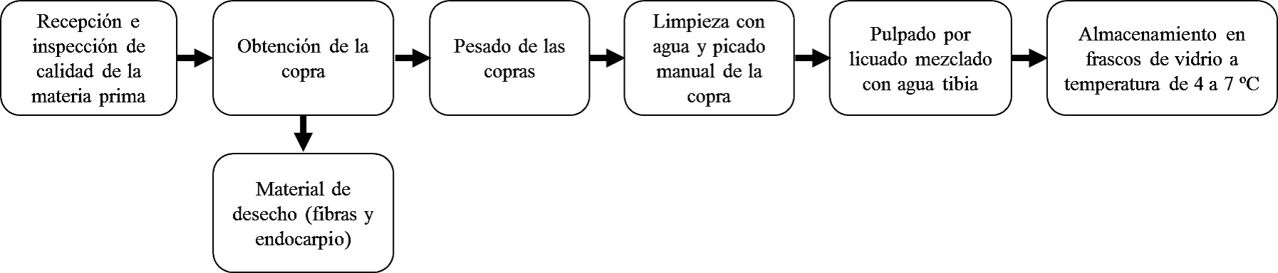 La obtención de la pasta de coco se realizó mediante el procedimiento descrito en la figura 1.