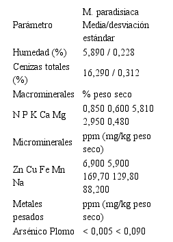 A la droga cruda molida (pseudotallo de M. paradisiaca) se le determinaron solo algunos de los parámetros de control de la calidad, tales como: humedad residual y contenido de cenizas totales (tabla 2).