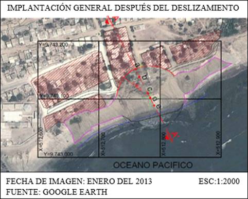 Se evidencia en la figura 2 el pozo petrolero ANCDD-02 ubicado en Ancón, el cual, por encontrarse cerca del acantilado frente al mar, fue afectado por deslizamientos ocurridos en octubre del 2012 dejándolo no operativo hasta la actualidad. Según datos proporcionados por técnicos de Pacipetrol el pozo generaba 345 barriles al año, y debido a los deslizamientos se pierden 30 años de producción generando una pérdida económica de 774900 dólares americanos. También podemos citar la problemática de la Escuela Fiscal de Niños “LEONARDO W BERRY Nº 5” ubicada en la Parroquia Ancón, donde se observa inclinación de paredes y pisos de la escuela; las fisuras y grietas apreciables en las paredes de las aulas son causadas por los cambios volumétricos de los suelos.