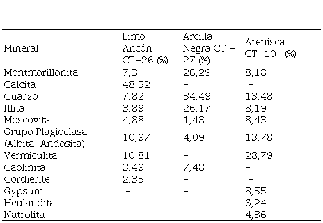 En el ensayo de difracción de rayos x, realizado en PROINSTRA, se obtuvo los minerales que conforman la estructura del suelo detallados en la Tabla 1. En el que se puede clasificar limos, arcillas y areniscas, y se evidencia la presencia de montmorillonita, que, por su naturaleza dipolar, la molécula de agua puede introducirse en la estructura con facilidad, originando problemas serios de expansión, causando fisuras y grietas en edificaciones existentes.
