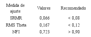 Con respecto a la medida NFI (The Normed Fit Index) lo recomendado debe ser valores igual o mayor que 0,90 (Carroll et al., 2002), como se describe en la Tabla 2.