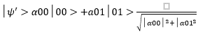Para un sistema de dos qubits, podemos medir solo un sub conjunto de qubits; por ejemplo, si medimos solo el primer qubit y resulta una medición de un estado 0 con probabilidad α00 2 + α01 2, así dejamos el estado después de la medición como: