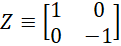Así pues, podemos representar puertas lógicas cuánticas de un qubit con matrices cuadradas de dimensión 2, la única restricción para que una matriz pueda ser una puerta lógica cuántica es que sea unitaria (Steane, 1998) . Lo interesante de este planteamiento es que al contrario del caso clásico, existe más de una sola puerta lógica cuántica no trivial. Dos de estas puertas lógicas importantes son la Z