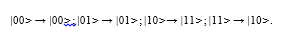 La acción de la puerta se puede describir como sigue: si el qubit de control es 0, entonces el qubit objeto no sufre ningún cambio, pero si el qubit de control es 1 el qubit objetivo es dado la vuelta. En ecuaciones se puede escribir así: