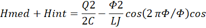 con g = λ /2λ= tan(2πΦext/Φ0) tan(2πM Iq/Φ0)/2. Ahora el hamiltoniano se puede escribir de la forma de la ecuación <3> más un término de la fuerza externa.
