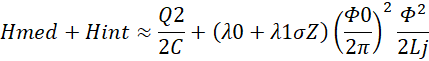 Para tratar al problema de una forma adecuada en el sentido cuántico, se linealiza la ecuación del SQUID para que el acoplamiento entre el oscilador LC y el qubit sea cuadrático. El hamiltoniano del qubit escrito en términos de las matrices de Pauli σ en la base de los estados de corriente {│0>, │1>} es: