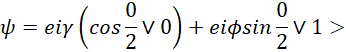 Donde θ, ϕ y γ son números reales, ya que el factor eiγ no tiene efectos al medir el estado del qubit por simetría, se puede escribir