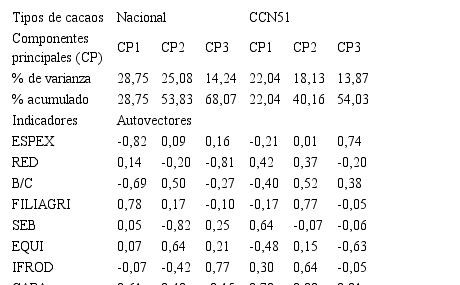 Keywords: Analysis of main components, cocoa National, CCN-51, indicators, sustainability.