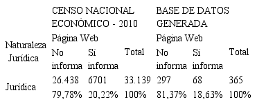 En base a los resultados obtenidos y al objetivo propuesto, la generación de la metodología aplicada es valorada de manera positiva por los autores ya que permite crear un indicador que puede replicarse a otras ciudades o provincias del Ecuador y que permite cuantificar el uso y presencia en la web de las pymes. De la misma manera, se ha podido comprobar que el porcentaje obtenido de nuestro estudio es cercano al porcentaje que otorga el Censo Nacional Económico, llevado a cabo en el Ecuador en el 2010, que entre sus variables de análisis cuantificó la presencia de internet a través de la posesión de una dirección URL, evidenciando que un 20,22% de las empresas poseen este servicio.