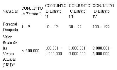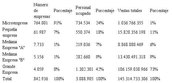 La generación de la categoría de grande, mediana, pequeña o micro empresa se hace en referencia a lo expresado en el Registro Oficial del Ecuador. Con este criterio, las variables a ser analizadas son el número de trabajadores (personal ocupado), el valor bruto de ventas anuales y el monto de los activos y que el criterio que prevalece es el valor bruto de las ventas anuales sobre el de personal ocupado (Registro Oficial, 2010).