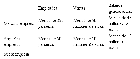 Europea, U. Recomendación de la Comisión, del 6 de mayo de 2003, sobre la definición de microempresas, pequeñas y medianas empresas. Diario Oficial de la Unión Europea, L124, 20 de mayo de 2003, 36-38.