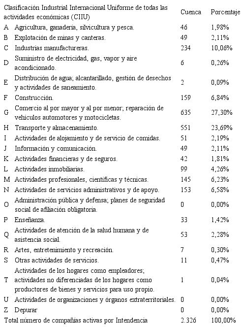 Para clasificar a las empresas legalmente constituidas por su actividad económica, se toma como referencia la categorización estandarizada definida por la Clasificación Industrial Internacional Uniforme (CIIU) versión 5.0. de las actividades económicas de las Naciones Unidas, metodología que es utilizada por la Superintendencia de Compañías, Valores y Seguros.