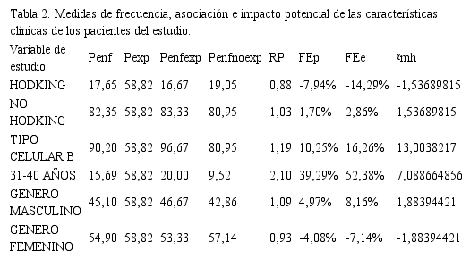Continuando, se analizó con la prueba Chi cuadrado la relación entre la presencia de VEB con las variables; se encontró relación estadística con el tipo celular B y la edad entre 31-40 años.