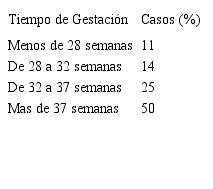 La mayor incidencia de parto pretérmino de acuerdo con la edad gestacional se presentó entre las 32 a 37 semanas de gestación, representa el 25% del total de partos de acuerdo a la Tabla 1.