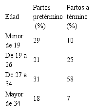 En relación al concepto de gestación la literatura teórica indica que las primeras semanas de ella son las más riesgosas de un embarazo, sin embargo en este estudio, el tiempo de mayor incidencia de parto pretérmino, se encontró en las gestantes de 32 a 37 semanas. (Rodríguez, Aguilar, Hernández, Ricardo, Vega y Aguilar, 2015). Evidentemente que las edades de embarazadas de mayor riesgo en este estudio fueron las mujeres fueron las menores de 19 años y aquellas que tienen de 35 años en adelante; lo que conincidió con lo que dice la literatura mundial que señalan como factor de riesgo a las embarazadas adolescentes (Valencia Laureano, 2015) y aquellas que tienen más de 35 años de edad, estas últimas especialmente en su primer parto, tal como lo refieren los resultados del estudio de(Rodríguez, Ramos y Hernández, 2013), por encontrarse algunas mujeres en la etapa de la premenopausia y por los cambios biológicos y hormonales que suelen ocurrir en las adolescentes. (García y Alemán, 2012).