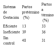 Otro factor materno que incidió en el riesgo de parto pretérmino fue la falta de controles prenatales. La Tabla 4 muestra un alto porcentaje de mujeres que atravesaron parto prematuro con controles ineficientes (menos de 5 controles, de acuerdo a la Guía Práctica de Salud del Ecuador) y las que no se realizaron ningun control en sus embarazos en un total de 88%, representando el 48%, las que no tuvieron asistencia en la atención prenatal, coincidiendo esta información con el nivel de instrucción primaria que presentaron el 95% de estas mujeres que no pasaron con ningún control, representando el 40% de los casos de multiparidad y el 50% de las mujeres que solo ostentaron escolaridad primaria. A diferencia, casi las dos terceras partes de las mujeres que atravesaron parto a término tuvieron un control eficiente, lo que refuerza el criterio de que la inasistencia a la atención prenatal es un factor de riesgo de parto prematuro.