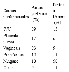 Considerando que las causas de parto pretérmino son múltiples, entre las más frecuentes se citan las infecciones de vias urinarias, tal como lo refieren los resultados del estudio de (Rodríguez, Ramos y Hernández, 2013) donde el 29% de las mujeres atravesaron parto prematuro sufrieron de IVU; probablemente sea que algunas infecciones urinarias son inicialmente asintomáticas, igual ocurre con la vaginosis bacteriana que participó con 23% y la placente previa con 17%, por lo que muchas mujeres no le toman atención, poniendo en riesgo sus embarazos. (Oviedo, Lira, Ito, Grosso, 2013), destacándose según los resultados que estos hallazgos estuvieron asociados al parto pretérmino, a la inasistencia al control prenatal y a los bajos niveles de instrucción de ciertos grupos etáreos de riesgo, lo que también es contrario a la situación de las madres que atravesaron parto a término, de las cuales más de la mitad no se enfermaron y en las restantes fueron contraladas estas desviaciones de la salud durante el control prenatal.