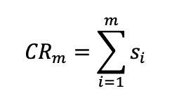 Ratio de Concentración (CRn). Puede ser calculado a un nivel de (m) empresas, donde m es el número que se define para las mayores empresas que se desean analizar (ordenadas por cuota de mercado (S i )).